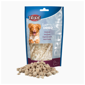 A mono-protein snack made from 99% duck breast, specifically suitable for dogs with food allergies.