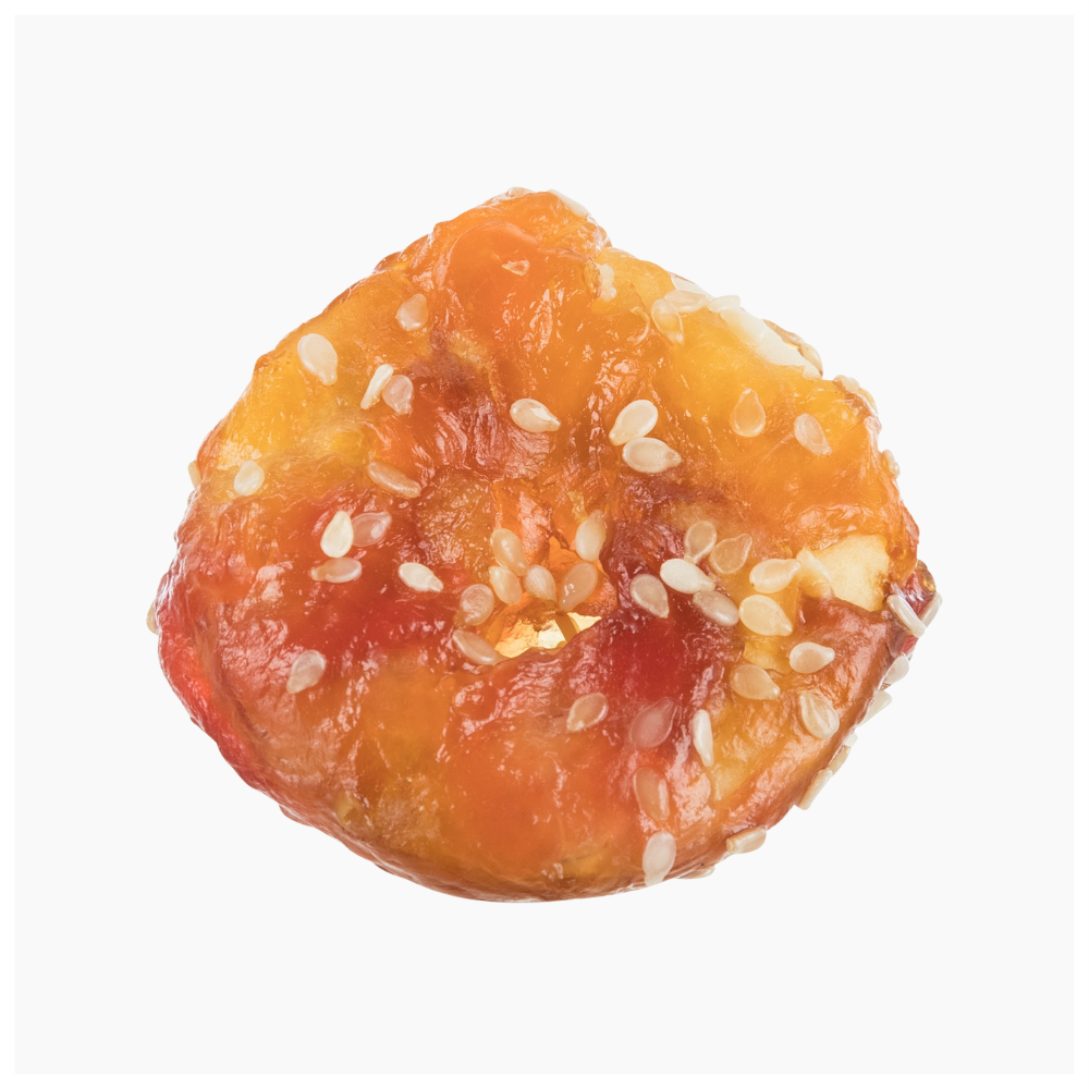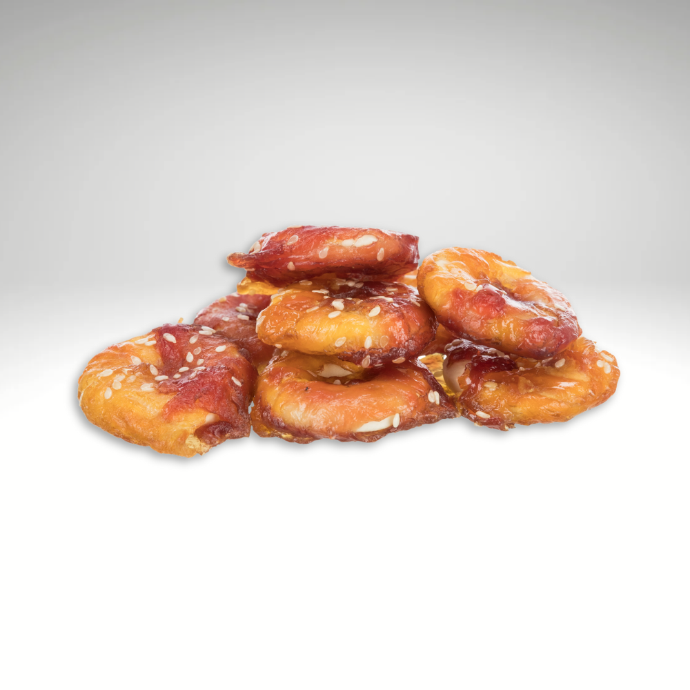 Composition – Beef hide, duck meat (25 % (outer meat)), chicken liver (25 % (filling)), sweet potato, rice flour, glycerine, corn starch, minerals. Gluten-free formula. No added sugar. Store in a cool and dry place.